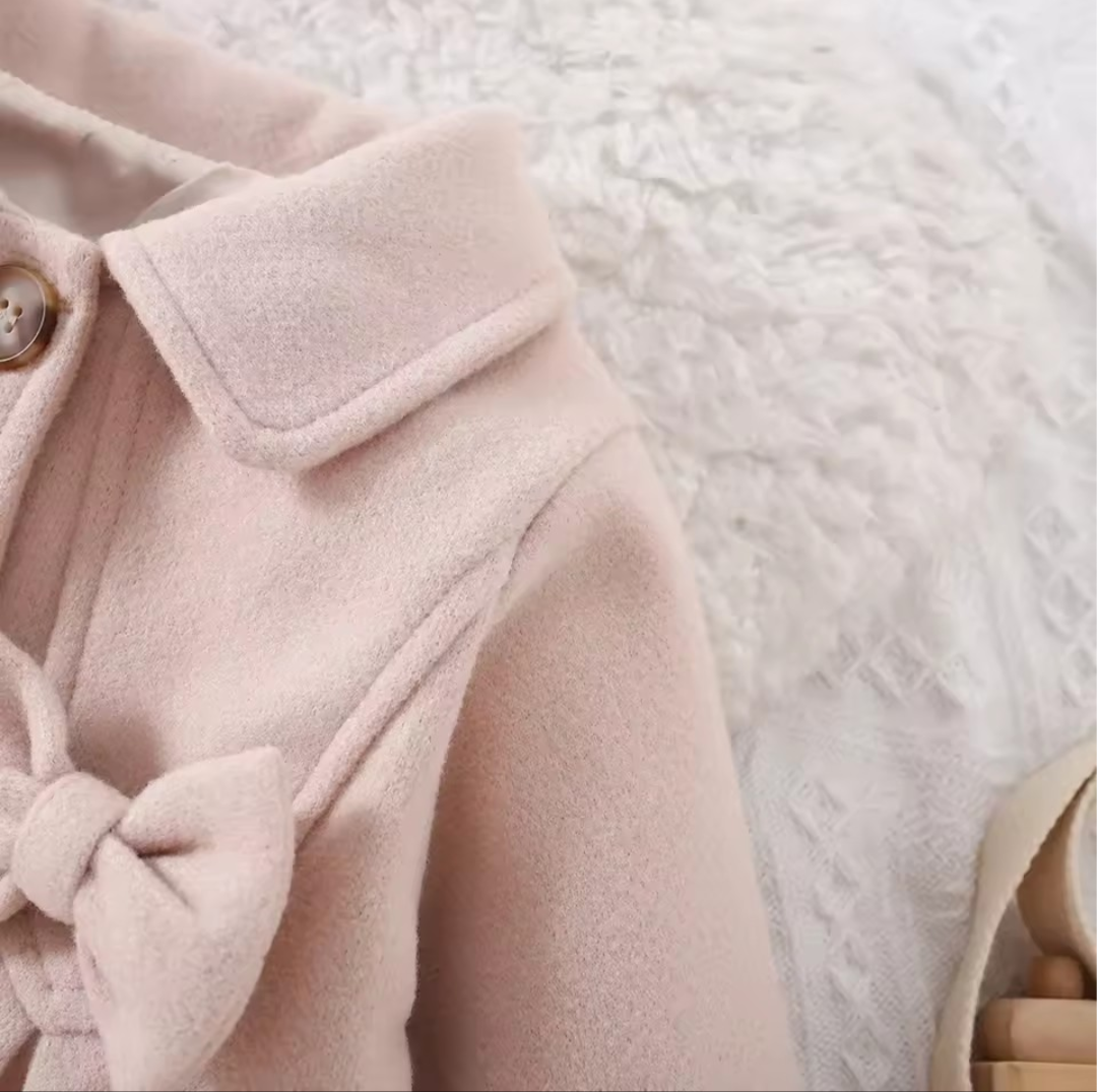 胸元のダブルリボンが上品で可愛い印象のフェミニンコート