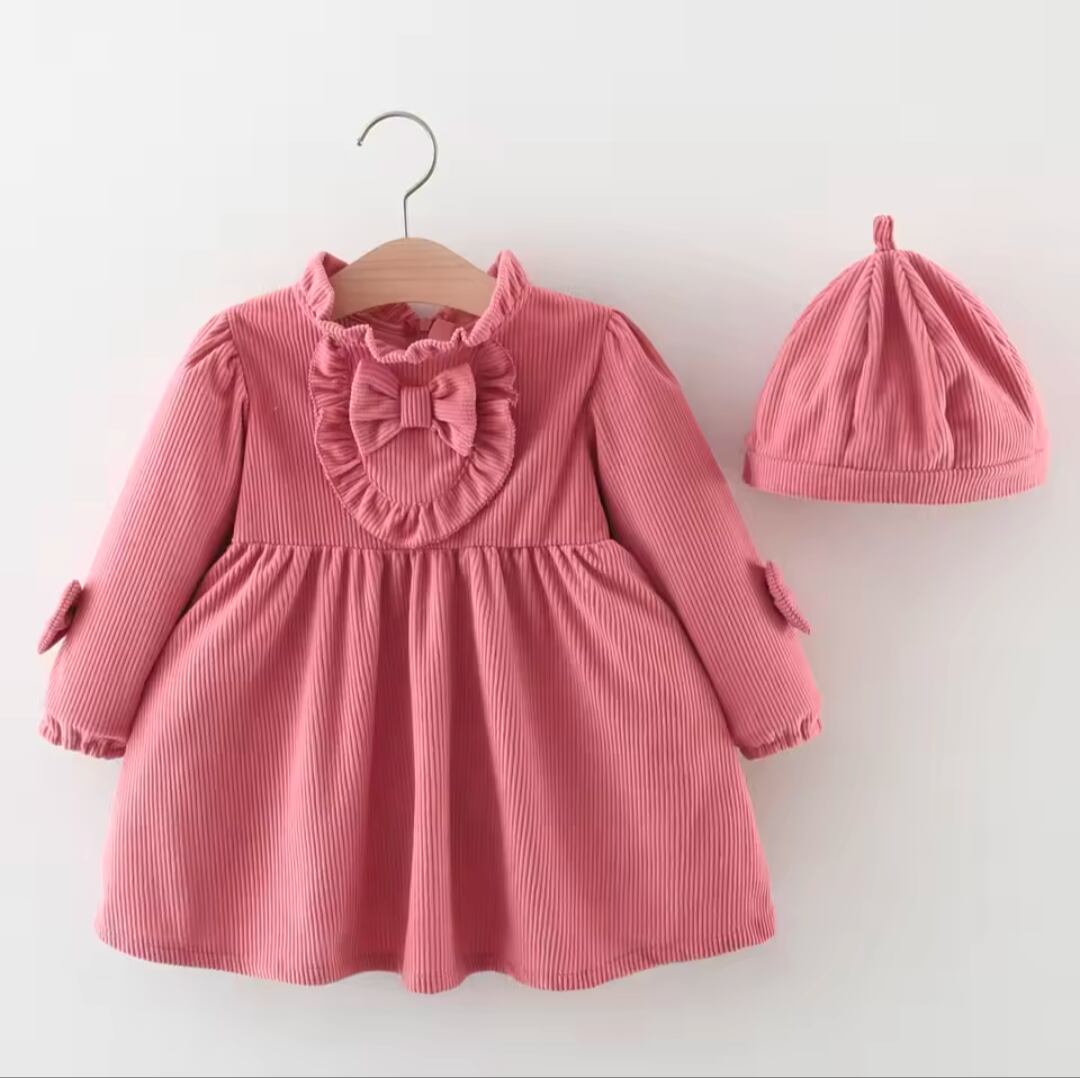 もこもこ帽子付き秋冬コーデュロイワンピースセット