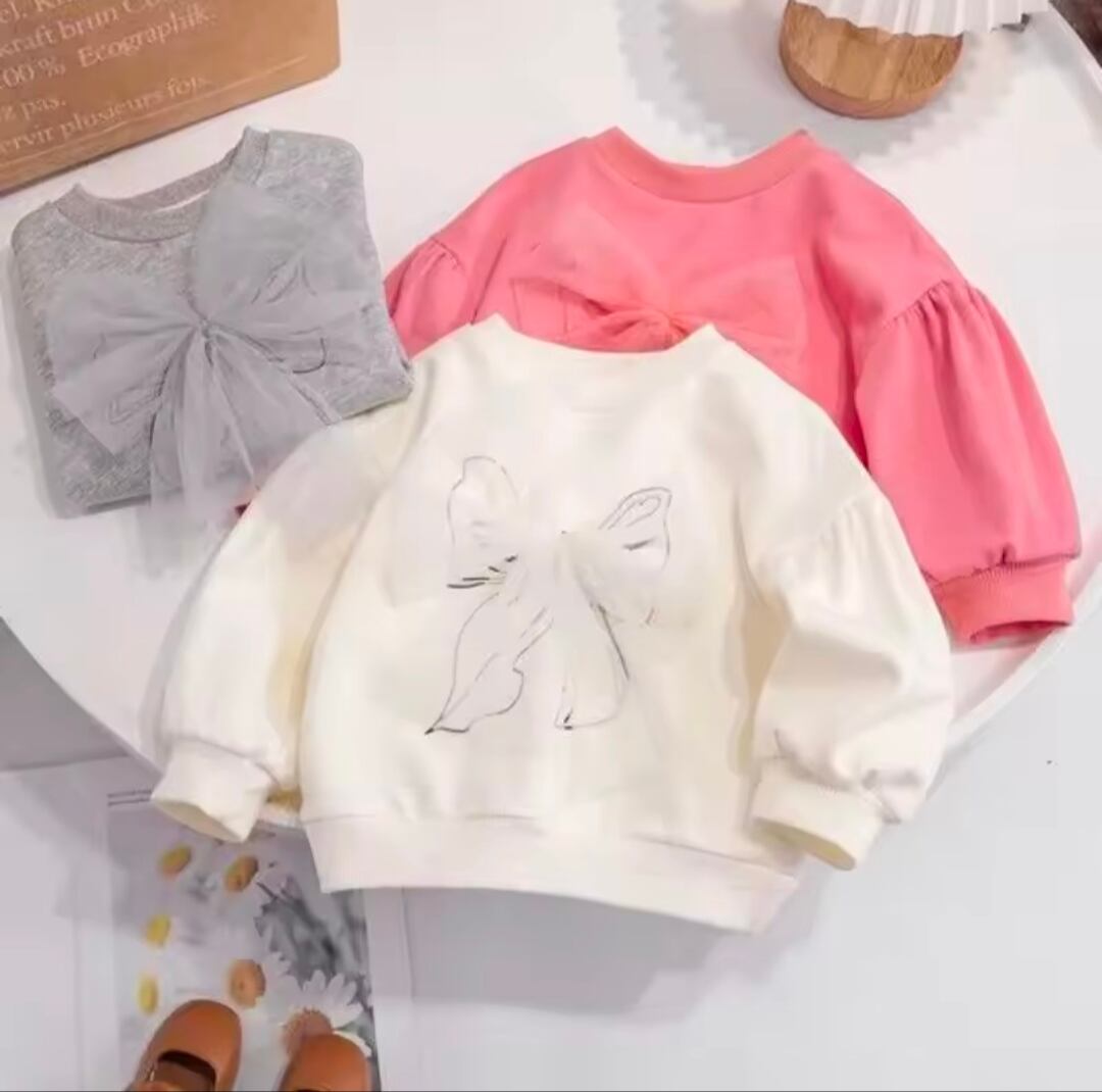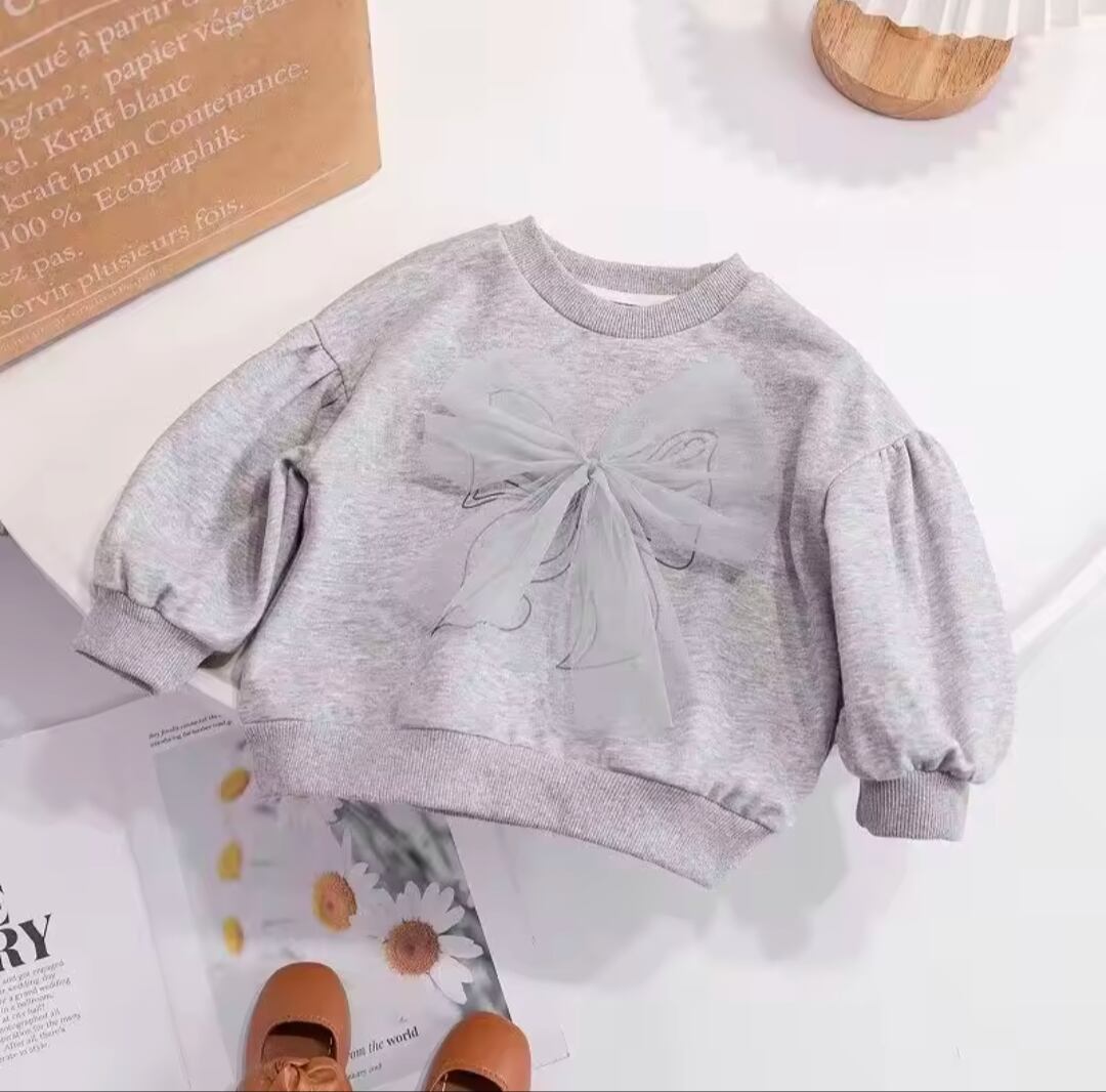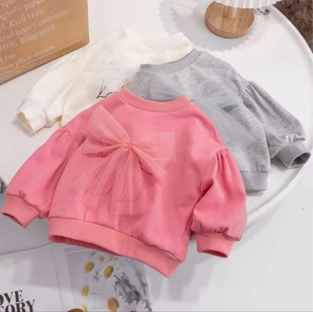 胸元のふんわりチュールリボンがポイントのガーリートップス